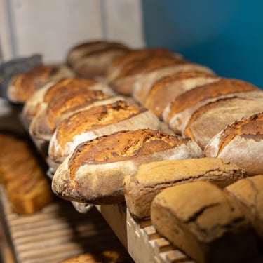 Nous fabriquons du pain bio, au levain naturel. Certains sont permanents, d'autres évoluent ou apparaissent au fil des saisons.
